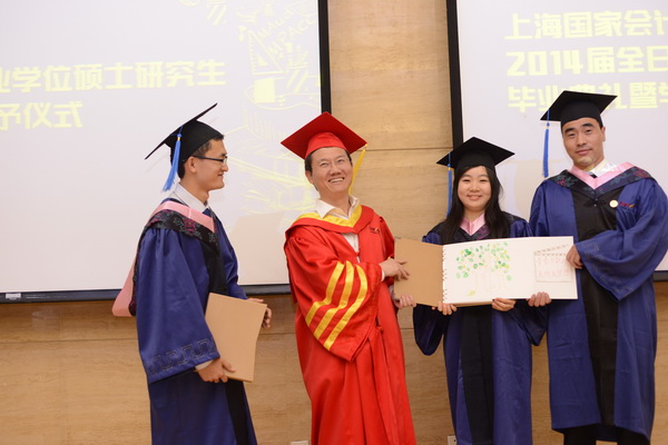(撰稿:钟雪冰)7月1日下午,上海国家会计学院2014届全日制专业学位硕士研究生毕业典礼暨学位授予仪式在学院150人报告厅隆重举行。89名身着学位服的毕业生郑重地从李扣庆院长手中接过硕士学位证书,他们是我院首届全日制毕业研究生。此前6月16日,学院学位评定委员会全体会议通过决议,决定授予蔡庆等60位同学会计硕士学位、陈星等29位同学审计硕士学位。
