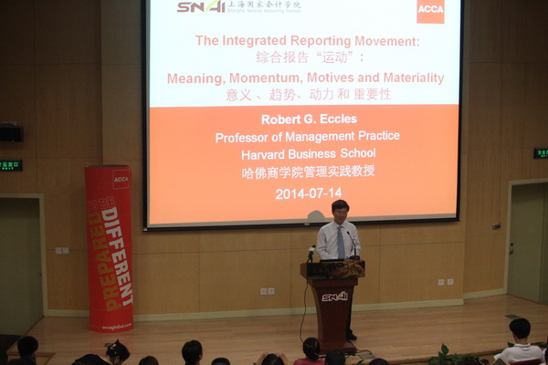 7月11日,学院联合ACCA特别邀请到哈佛大学商学院Robert G Eccles教授就综合报告的演进、原则、要素及其在中国的前景展开分享。Eccles教授于1979年加入哈佛商学院,并在十年后获得终身教职。最近25年来,他一直致力于改变公司对外报告的方式。Eccles教授现任IIRC指导委员会成员,并曾任可持续会计准则委员会(SASB)首任主席。