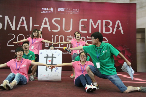 寓学于乐的素质拓展,是暑期学校学生最欢乐的课程之一。“个性名片”和“团队组建”环节,一方面起到了破冰和熟悉的作用,另一方面也在短时间内加强了团队合作与信任,丰富多彩的展现出新生代力量的才力智力。“驿站传书”环节则考验大家的前期沟通和后期默契。“丛林求生”项目考验了大家的集体智慧和博弈策略。每支队伍各显所长,队长集中智慧,现场忙的不亦乐乎。短短的半天培训,忙碌的教练员,欢乐的同学,融洽的现场,大家各自收获欢乐的同时,也增加了彼此的了解,天南海北齐聚SNAI ,从此都是一家人。