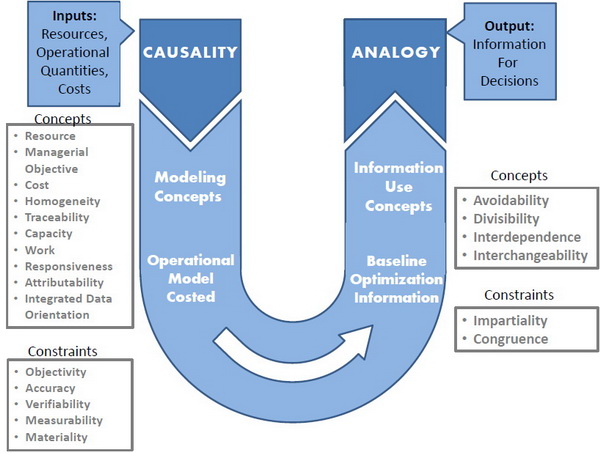 至于为什么要形成概念框架,White先生说,一是信息沟通交流的需要,“正如会计准则的概念框架一样,这是基础。”二则是现实决策中成本分析方面的严重缺位。“不少公司直接采用财务会计的那一套成本分析方法和标准。”内外有别,需要另起炉灶。采用错误的原则和方法会对内部决策造成很多不便,比如运营成本分配到产品成本造成的扭曲、因为缺少流程和资源信息造成的透明度缺失、笼统的资金建模造成的相关性缺失、无法清晰地识别冗余能力等等。