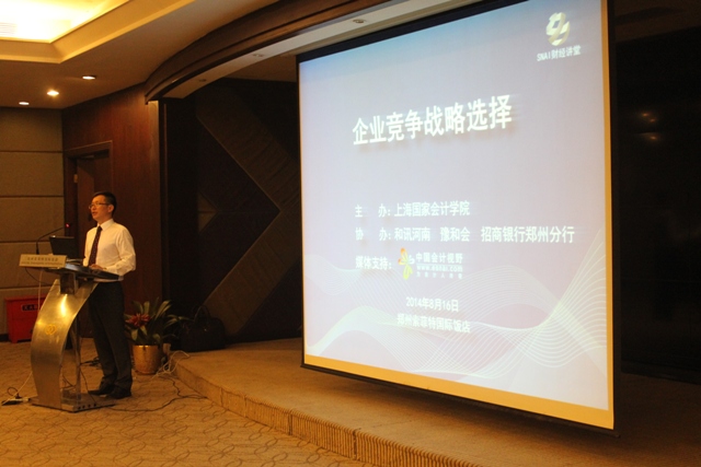 8月16日上午,由上海国家会计学院主办、和讯河南、豫和会、招商银行郑州分行联合协办、SNAI郑州校友会承办的SNAI财经讲堂活动在郑州举行。本次讲堂由上海国家会计学院院长李扣庆教授与来宾分享“企业竞争战略选择”这一话题,旨在帮助郑州的企业了解公司生存与发展和价值创造之间的关系; 了解战略管理在公司发展过程中的作用; 提升运用各种分析工具进行和战略制定的能力,以及提升领导或参与战略执行的能力。活动由SNAI市场部汤超义主任主持。