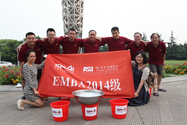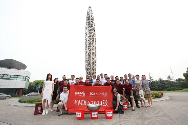 (撰稿人:EMBA2014级B班学员 程杰 摄影:角度摄影)8月23日,上海国家会计学院—亚利桑那州立大学EMBA2014级的同学在上海国家会计学院公正柱下,接过了全球爱心的接力棒,完成了冰桶挑战!