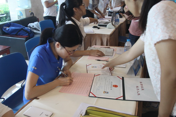 在这一天,学院各相关部门接待点的老师们从早到晚不辞辛劳地为络绎不绝前来报到的新生及家长们提供服务,他们人均上百次的“你好”、“好的”、“下一位”这样简单而又枯燥的话语却诠释了最为复杂和生动的上海国家会计学院教师形象。