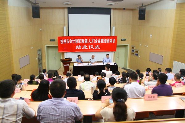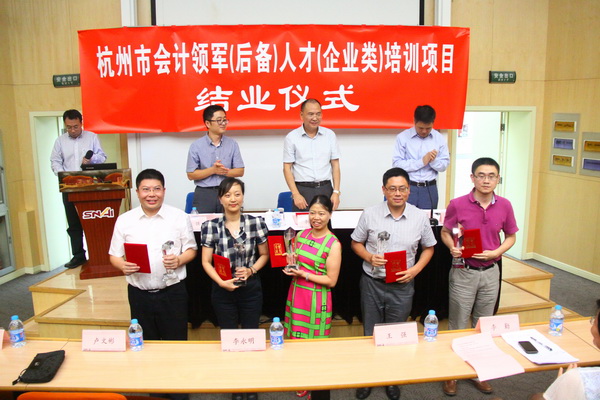 最后,杭州领军班级班长刘志良代表全体学员发表了毕业感言,三年间,杭州市财政局作为股东投资了领军这批债券,学员们更认为是交易性资产,因为领军学员随时可以变现使用。 经过三年的持有,内在价值得到提升,这些加速折旧的固定资产得到了修理、改良和更新,已完全覆盖了日常消耗的折旧,公允价值也在向正方向变动,也不需要提减值准备了。只准备着,让杭州市财政局持有至无期投资,不抛售,不放弃,为实现会计领军人才价值最大化,不辜负领导的期望,在团队中带头作用,在行业中起表率榜样作用,为会计行业人才素质提高、知识提升实现净流入,使得财政局和会计领军人才的综合收益最大化 ,完成行业使命奉献一份力量,让会计领军与杭州发展共腾飞。