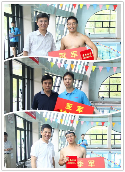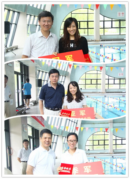 下午进行的个人项目分别是男子100米竞泳和女子50米竞泳,来自各部门的各位运动健将纷纷对奖牌发起冲击,展示自己的高超水平。最终男子的前三名分别由市场部的刘廷和、教务部的姚凡和信息远程部的胡劲波三位老师获得。女子的前三则被教务部的钮瑜瑾、赵婷和行政财务部毛昭文分获。