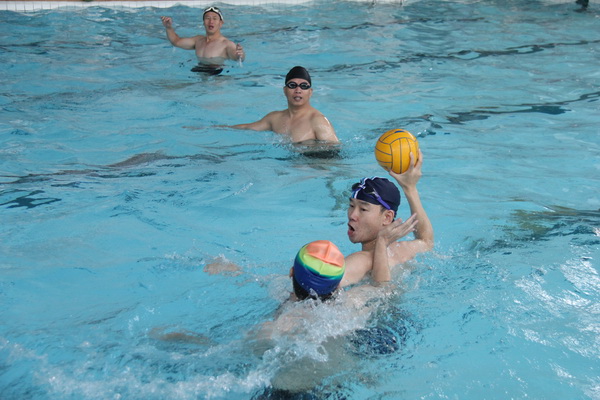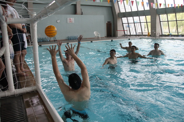 水球是一种在水中进行的集体球类运动,是一项结合游泳,手球,篮球,橄榄球的运动。随后进行的水球比赛更是激烈,本次比赛采用了分组淘汰和跨组交叉比赛规则。各参赛队根据队员情况,运用了不同的技战术,有高举高打的,单刀直入;也有利用传球,临门快攻的。各组队员之间通力配合,在比赛过程中,都展现出了不畏艰难的拼搏精神。最终教务部代表队以明显的优势夺冠,信息远程部和教研部则分别获得第二、第三名。