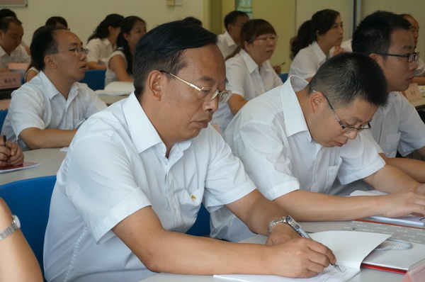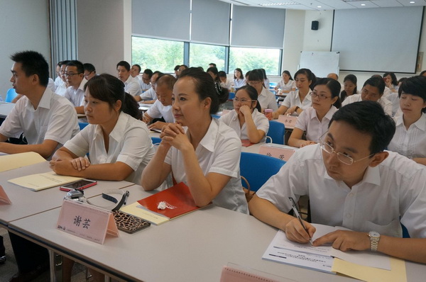 接着赵天晓表示很高兴来到美丽的上海国家会计学院,同时也非常感谢学院各个老师及工作人员的细心安排。在这5天里,学院为大家请了资深专家,传授银行客户营销、银行财务管理、财务报表分析、宏观经济形势、银行贷款管理方面的知识。同时还安排参考上海期货交易所这样的实地考察活动,希望各位学员珍惜机会,开拓视野,增加知识。接着赵天晓副处长就培训纪律提出了几点要求。最后预祝学员们在院学习愉快、生活愉快。
