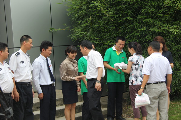8 月22 日下午,刘勤副院长带领各部门负责同志为安保、工程、园林等奋战在炎夏中的物业员工送去了毛巾、沐浴露等消暑降温的慰问品,更送去了院领导和学院员工的亲切问候。刘院长叮嘱各物业负责人,一定要注意为物业员工营造较为舒适的工作环境,做好防暑降温措施,保证物业员工身体健康。同时,各物业公司一定要注意做好夏季安全生产工作,保证学院的正常运转,提供更加优质的物业服务,为学院的事业发展做出更大的贡献。