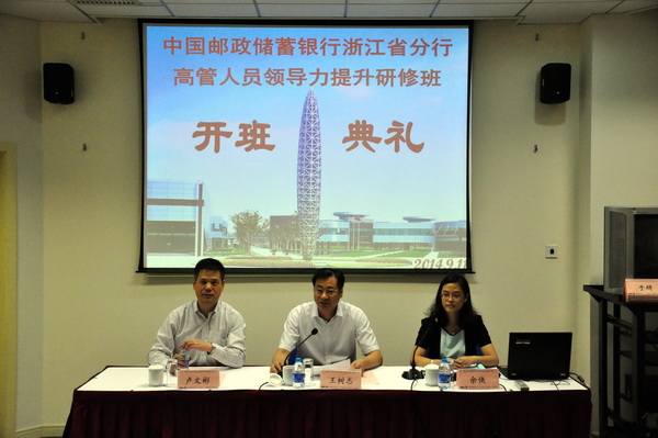 (撰稿、摄影:王欣)中国邮政储蓄银行作为中国商业银行的新兴力量,拥有最广泛的网点覆盖和最大的客户群体。但是,邮储银行在转型的过程中面临着许多重要的战略选择,为了帮助浙江邮储银行正确把握转型方向、高效取得转型成果,学院根据其需要,为其量身打造了高管人员领导力提升培训课程。近50位该行中高层管理人员在我院接受为期一周的封闭式培训。中国邮政储蓄银行浙江省分行王树志行长、上海国家会计学院卢文彬院长助理出席开班仪式并讲话。开班仪式由浙江邮储银行培训中心余侠主任主持。