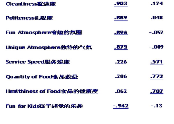 在主题餐厅开发案例中,Sinha教授讲述了一个有趣的现象,以“孩子感受到乐趣”为研究因素,一个受欢迎的餐厅这个因素的系数值应为负数,这恰恰与人们想象的相反,因为通过调查孩子喜欢的餐厅常常是杂乱无章而喧闹的,而被调查对象一定会是大人,他们不会喜欢这样的餐厅,所以“孩子感受到乐趣”的属性使大人们的满意度降低。