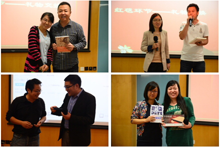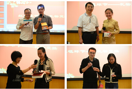第一次献血时收获的纪念奖、事务所周年庆时的纪念水杯、精神食粮—书籍、巧克力、红心柚、和田大枣、洗发水、护手霜等等。礼物大小不一、千奇百怪,却引得学员们阵阵欢呼声和掌声。礼轻情意重,友谊的种子已在两个班的学员心中播下,大家迅速融入成一个大家庭。