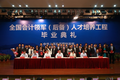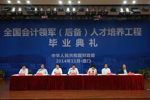 财政部党组成员、部长助理余蔚平、会计司司长杨敏、中国注册会计师协会副会长兼秘书长陈毓圭、厦门国家会计学院院长邓力平、北京国家会计学院院长高一斌、上海国家会计学院院长李扣庆、中国航空工业集团公司副总经理、总会计师顾惠忠出席典礼。会计司司长杨敏主持典礼并宣读了《财政部关于颁发敖都吉雅等182位同志全国会计领军人才毕业证书的通知》。