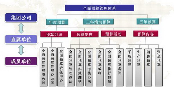 从上世纪90年代开始,中航工业就开始推行与战略、计划、业务、考核相结合的全面预算管理,其体系结构见下图。