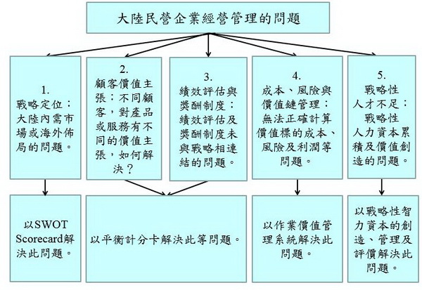 而在海峡另一侧,大陆民企的问题则有所不同(见下图),吴教授也积累了十余家企业的解决方案。
