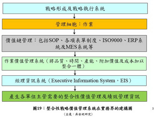 吴安妮教授集28年的研究成果,整合成为“整合性战略价值管理系统”( Integrative Strategic Value Management System, ISVMS),并于2012年及2013年在台湾、大陆和美国取得商标权,希望藉此搭建学术研究落实至实务运用的桥梁。其完整的建构图如下: