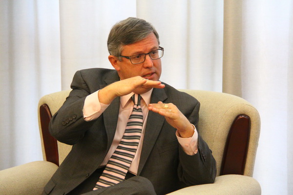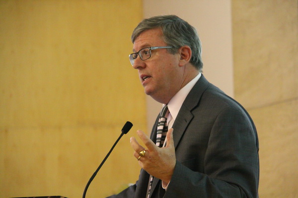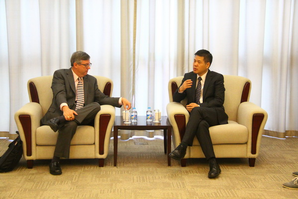 论坛前,卢文彬院长助理和IMA总裁、COSO董事杰弗里• 汤姆森进行会谈