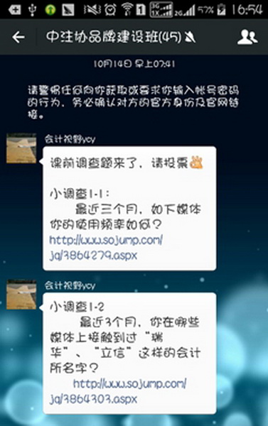 首先,与时俱进,增加互联网元素。随着互联网时代的到来,伴随而来的是传统商业模式的颠覆,面对这些,会计师事务所如何进行品牌营销?如何进行互联网平台建设?如何利用这些新鲜元素促进事务所的发展?本次培训安排了一天互联网商业模式创新,给大家带来颠覆性的头脑冲击;同时,还安排了半天由会计视野网站基于大量数据和案例带来的互联网环境下的会计师事务所品牌推广,课程主讲尹成彦老师课前在群里发放课程问卷,根据学员反馈及时调整课程内容,保证课程的前沿性、及时性和有效性。学员大呼课程设计更接地气,更有实践意义。互联网也在潜移默化的改变着我们的学习方式,我们在开课第一天就给大家建了微信群,每位老师都进入该群,跟大家一起探讨事务所品牌和发展。