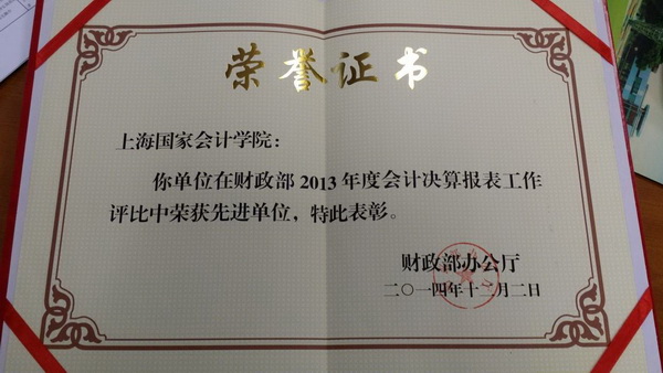 我院喜获2013年度财政部办公厅决算编报工作先进单位