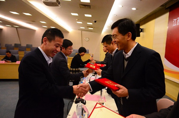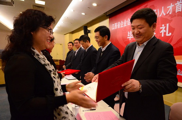 省财政厅会计处程继强处长代王斌副厅长宣读了讲话稿,并宣布了江西省财政厅关于颁发鲍江燕等25位同志江西省会计领军人才毕业证书的通知及优秀学员、优秀论文奖获奖名单,随后,各位领导为各获奖学员及全体毕业学员颁发了证书。