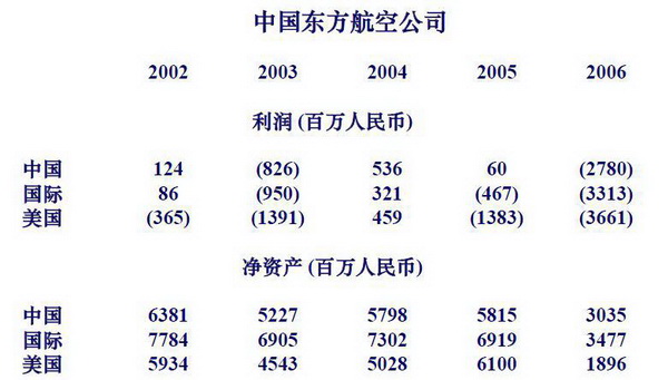 通过比较三种会计准则下中国东方航空2002年的利润,我们可以清晰地看到三种会计准则下计算的企业利润存在着巨大的差异。在国际财务报告准则和中国财务报告准则下,中国东方航空公司2002年的经营状况不错,分别获得8600万元、12400万元的盈利,但是在美国会计准则的计算下,东方航空公司却在2002年产生了36500万元的负债。我们知道三种计量方式的依据都是中国东方航空公司2002年的经营活动,也就是说在相同的经营活动下,不同的会计准则所产生的不同的计量方法会使该公司的财务报告产生巨大的差异。