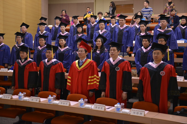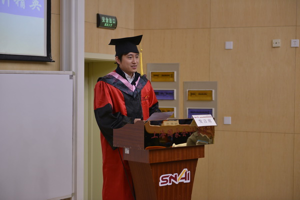 唐家乾书记宣读了学位评定委员会决议书:根据《中华人民共和国学位条例》和《上海国家会计学院学位工作细则有关规定》,经2014年6月18号和2015年1月9号上海财经大学学位评定委员会审定,决定授予蔡锋平等33位同学会计硕士学位。唐书记讲到:上海财经大学跟上海国家会计学院渊源很深,财大的会计学员,目前在国际会计顶尖杂志上发表的论文数量在国内高校是名列前茅,上海国家会计学院在这类杂志上发表的论文也是首屈一指的,虽说在职MPAcc学位是两家联合,但主要是上海国家会计学院的辛勤培养,再次对各位同学获得学位表示衷心的祝贺。