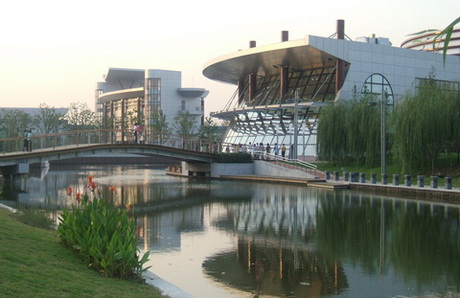 虽然已近中秋,学院的景致仍是一片烂漫。满是绿意的校园,到处弥漫着桂花的清香,更显得一尘不染。沿着中央大道一路走过,傍着人工河,又新添了景致。在河对面,缤纷花树掩映中,学院新区矗立其中,像一个清新美丽的江南女子,举手投足彰显优雅高贵,端得落落大方。连接它的,是一弯木制拱桥,信步其中,脚下的弹性促使你的步伐飘然优雅。走过拱桥,便是弧形餐厅,傍水而建,“宁可食无鱼,不可居无竹”的感觉,在这里就餐会有深刻的体验。餐厅的后面,是新建的教室,一切陈设显得与周围环境非常和谐,置身其中,聆听智者、长者的教诲,在求知中享受生活的感觉,不亦乐乎。
