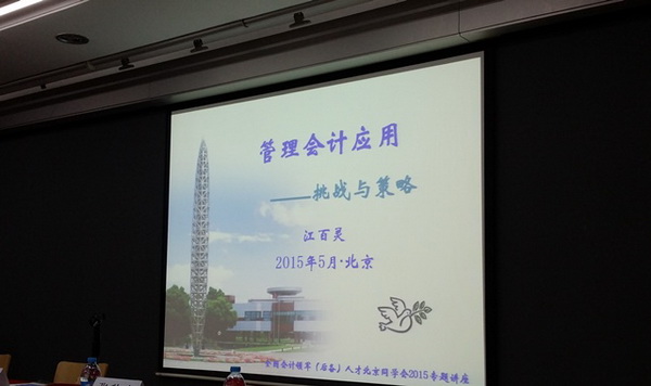 自2015年初开始,教务部同全国会计领军的北京、广东、湖北、河南、长三角同学会积极主动联系,通过走访面谈、电话和邮件等沟通方式,与各地同学会的会长们共同探讨如何更好的开展各地同学会的活动,为领军学员提供更有附加值的增值活动,增强领军项目的影响力和领军学员之间的凝聚力。各地领军同学会纷纷对学院的这种想法给予了非常积极的评价。在同领军北京同学会会长夏鹏(北京深华新股份有限公司董事长)充分沟通的基础上,5月10日,教务部邀请我院江百灵副教授为北京同学会在北京交通大学举办的活动上做主题为“管理会计——挑战与未来”的主题演讲,他以“管理会计未来走向何方”为线索,系统的讲述了管理会计未来的走向。