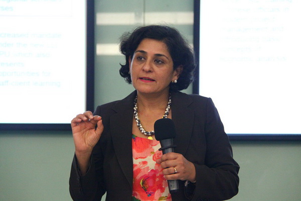 Abha女士在精彩演讲后,就世行学院与中国合作伙伴的具体战略、目标和行动计划,“领导力、学习与创新”三大支柱的界定、开放学习校园课程资源的开放性等问题与SNAI各部门同事进行了深入交流。