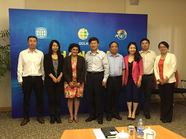 接下来,李扣庆院长、亚太财经与发展学院(AFDI)和远程教育部同事与Abha女士进行座谈交流。双方就世行学院(LLI的)的运营模式、与SNAI远程教育资源的互利合作、与AFDI共同构建区域知识中心等方面进行探讨并达成共识。