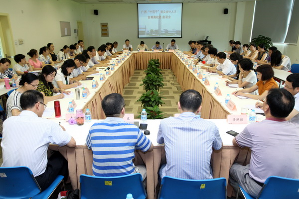 (撰稿:刁江城)为进一步做好广西“十百千”拔尖会计人才培养工作,了解培养效果,完善培养机制,提高人才使用效率,广西“十百千”拔尖会计人才首期高校班座谈会在学院举办。广西党委组织部副部长曾艳、广西财政厅总会计师王代玉 、上海国家会计学院院长李扣庆出席会计并发表讲话 ,广西财政厅会计处处长陈海涛、副处长徐捷,上海国家会计学院教务部主任张各兴、钮瑜瑾老师参加了会议。