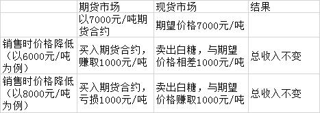 有上图可以看出,中粮屯河在白糖期货市场上卖出白糖期货合约,卖出期货合约是为了防止在现货后续销售时价格下跌的风险而在期货市场上卖出与企业现货数量相当的合约所进行的一种交易方式。