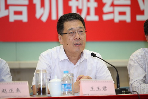 王玉君局长在讲话中首先对上海国家会计学院长期关心支持山东地矿事业的发展和对培训班的精心组织筹备感谢,希望局院继续深化合作、开展更深层次的长远合作。王玉君局长充分肯定了培训班在组织管理和培训学习方面取得的成果。坚持高标准、严要求,组织周密,创新形式,联系实际,学用结合,圆满完成了预定的学习任务,达到了预期的培训效果。王玉君局长指出,总经济师是一个单位的经济运行调度长,掌握着各单位的综合性经济工作,其地位和作用非常重要。特别是在全局上下共同探索转型升级道路的重要时刻,举办全局高级经营管理培训班恰逢其时,总经济师肩负的任务更大、更为重要。一要对转型升级有更加深入的思考,结合本单位的工作,提出一套本单位可以实施的发展思路,实现可持续发展;二要把所学的知识和学校老师热情工作、严谨治学的精神带回去,以更好的状态、更高的标准,推动工作开展;三要跟踪评估学习培训效果,看学员们经过培训以后作用发挥到什么程度,能做出什么样的成绩,利用平台、机会和资源的能力如何。