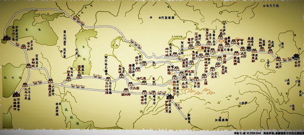 北道:敦煌——哈密——乌鲁木齐——阿拉木图——托克马克——塔什干——撒马尔罕