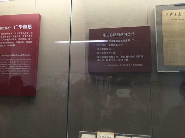 丰盛的课程大餐外,为进一步提升班级精神修养,在项目组的组织安排下,8月20日班级参观了陈云纪念馆。序厅中矗立着高3.6米的陈云汉白玉雕像,栩栩如生地刻画出陈云作为共和国经济建设的开创者和奠基人之一的光辉形象。参观前,陈云纪念馆党总支书记兼副馆长马继奋激情昂扬地就陈云一生及其高风亮节给学员做了细致地讲解。之后,班级先后参观了各个展厅,从陈云作为工人运动领导人、社会主义经济建设的开创者和奠基人、到陈云简朴的个人生活、学习态度,无不给学员留下了深刻的印象。