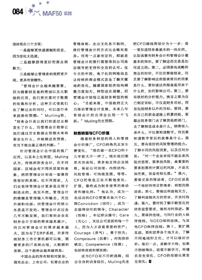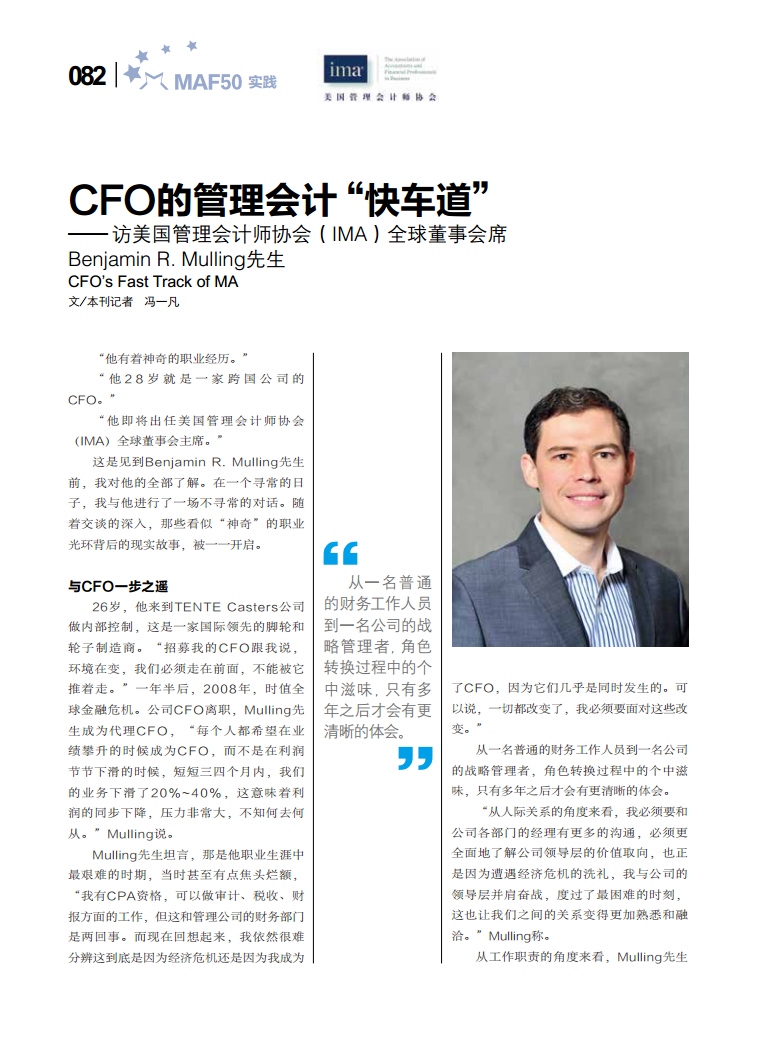 CFO的管理会计“快车道”——访美国管理会计师协会(IMA)全球董事会主席Benjamin R. Mulling先生【新理财,2015年5月刊】