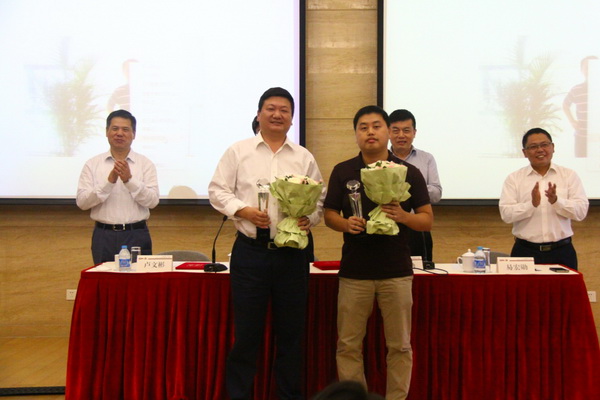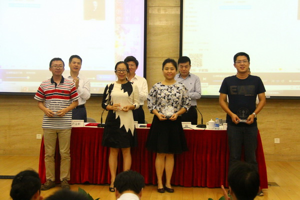 院领导为获奖的员工颁发了证书,并赠送了鲜花。现场一片花团锦簇,鼓掌声与鼓乐声交织,气氛热烈。教研部袁敏副教授、市场部李艳主管、教务部郭峰主管及AFDI王蕾老师作为获奖员工代表上台发表获奖感言,他们与大家分享了工作心得,交流了体会,并对学院领导和同事表达了由衷的感谢,喜悦之情溢于言表。