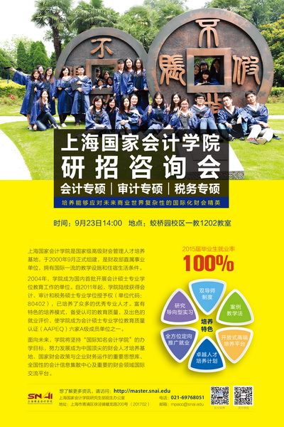 (撰稿、摄影:韩笑 )为方便考研学子更清晰地掌握上海国家会计学院(SNAI)招生制度,了解招生细节,学院研究生部招生办公室特赴浙江财经大学、南京财经大学、江西财经大学等高校举办现场研招咨询会,为考研学子提供面对面的交流沟通机会。