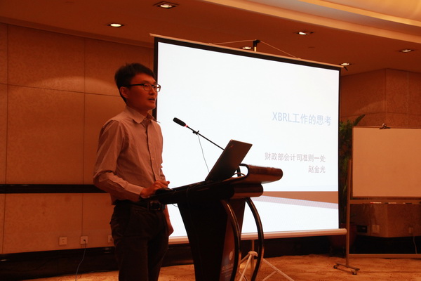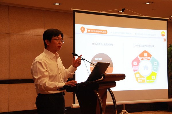 赵博士开篇以电子地图和传统纸质地图的对比为例,非常生动形象的揭示了XBRL这一技术对财务报告使用模式的影响。通过赵博士对财政部推进XBRL工作的介绍,让我们深刻的了解为何财政部、国资委、银监会、保监会和国标委5部委均采用联合印发通用分类标准实施通知的形式组织实施工作。今年,为宣传推广通用分类标准实施和XBRL(可扩展商业报告语言)应用经验,激发企业实施通用分类标准的内生动力,促进提升企业会计信息化工作水平和会计服务企业经营管理的能力,财政部还发布了《关于征集企业会计准则通用分类标准典型实施应用案例的通知》。最后赵博士对XBRL的应用提出了自己独到的见解。
