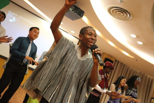 迎新晚会高潮迭起,精彩纷呈,在全体留学生的大合唱“One Love Group Song”中圆满结束。歌声唱出了大家的心声:“Sweet Sweet Home, One Love Group”,我们是温馨甜蜜、团结友爱的大家庭!