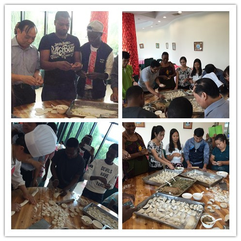 (撰稿、摄影:石文岚)10月4日上午10:30,学院一餐厅内人头攒动,在校的近二十位国际留学生正饶有兴致地学起了包饺子。擀皮、放馅、捏牢,在亚太财经与发展学院彭润中处长的示范下,一个个“元宝”型的饺子象变魔术般呈现在大家眼前。大家跃跃欲试,缅甸的KAW MAI同学擀得饺子皮又快又好,加纳的MICHAEL CORNELIUS同学做得大饺子得到了大家的称赞,几分钟后,盘子里聚集了好多种形状的饺子:包子型、烧卖型、汤圆型……。没过多久,来自非洲和美洲的几位留学生,就“败”下阵来。经过一个多小时的努力,在餐厅大师傅们的帮助下,一盘盘热气腾腾的饺子终于上桌了,同学们吃着自己包的饺子纷纷翘起了大拇指。