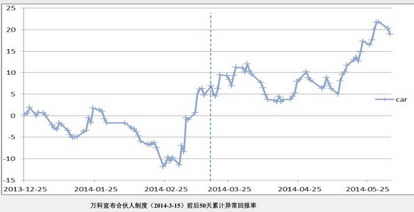 经过以上措施的实施,很大程度提振了业绩,从2014年3月15日万科公布“事业合伙人”制度之后,股价持续稳步攀升,体现了资本市场对万科业绩与发展前景的肯定。