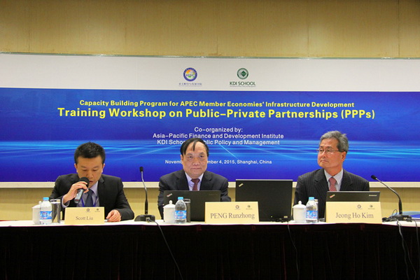 (撰稿:刘晓强)11月30-12月4日,由亚太财经与发展学院(AFDI)与韩国发展研究院公共政策与管理学院(KDI School)联合主办的“APEC政府与社会资本合作模式(PPP)” 国际培训班在上海国家会计学院举行。亚太财经与发展学院彭润中处长和韩国发展研究院公共政策与管理学院Jeong Ho Kim教授出席开幕式并致辞。来自中国、印度尼西亚、马来西亚、秘鲁、菲律宾、泰国、越南、柬埔寨、老挝等14个经济体的政府机构与学术界的约30名代表参加了此次培训。