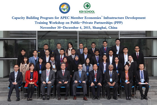 APEC是亚太地区经济合作的重要平台,近三年来,基础设施投融资合作都是APEC财长会机制下的重要议题之一。当前APEC地区各经济体普遍面临着巨大的基础设施需求和有限的公共财政资源制约的现状。为解决巨大的基础设施融资缺口,仅靠公共投入远远不能满足需要,而政府和社会资本合作模式(PPP)可以吸引更多的社会资本投资于基础设施建设,形成多元化、可持续的资金投入机制,是一种能使政府、企业、社会多方共赢的公共产品提供方式。从2014年底开始,为加强APEC成员经济体官员基础设施发展能力建设, AFDI和KDI School合作分别在中国上海和韩国首尔举办了两期系列培训,此次培训是双方的第三次合作。