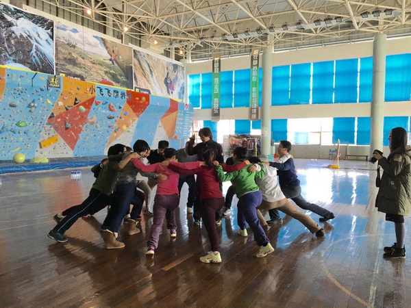 团队建设活动激发了大家体内力量与协调性,合作及交流的通道,沿着这条通道,大家一起来到了真正的攀岩世界的大门口。