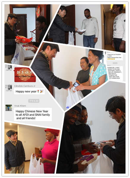 在奥林匹克花园,李院长走访了留学生住宿的每一栋楼和每一个房间,并为十一位留沪留学生一一送上了为他们精心准备的牛肉水饺、芝麻汤圆和大白兔奶糖,并为他们详细解说了这三样食品在中国传统风俗特别是中国新年中的重要寓意,同时祝福他们在即将到来的中国新年:猴年吉祥,假期愉快,在中国的学习与生活就像大白兔奶糖一样甜甜蜜蜜!留学生们感谢李院长和学院为他们提供的各项服务和帮助,特别感谢李院长在除夕日来看望他们,也祝愿学院所有人员猴年快乐,永远是相亲相爱的一家人!