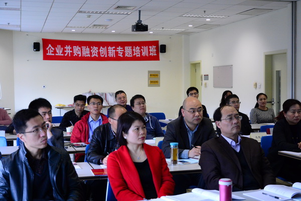 (撰稿、摄影:赵云燕)3月17日-18日,我院公开课举办了首期“企业并购融资创新专题”培训班,本次培训邀请到了研究生部周赟博士正式开讲第一期,并吸引了来自全国各地投资、并购或相关岗位学员共计三十多位报名,周赟老师凭借多年的并购重组实务经验和深厚的专业素养,在两天的课程中,旁征博引,风趣幽默,得到了学员的一致好评,也正式开启了2016年企业并购融资创新专题“培训班的序幕。