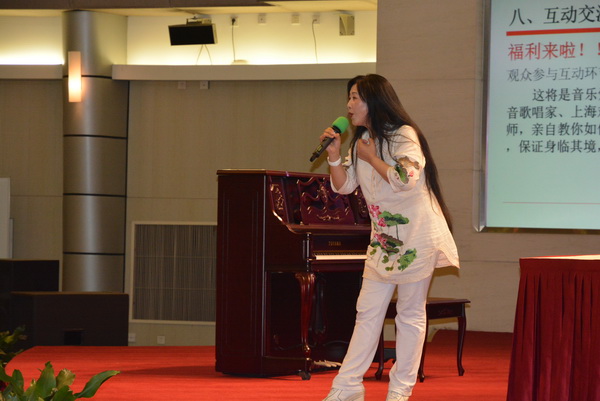 为了让大家更好地理解讲堂的主题,她一边传授知识,一边演示。她认为,声与歌两者相辅相成,只有在说好了的基础上才能唱。她还谈及了声音的审美观念,什么样的声音是美的?自然、轻松和舒服的声音是美的,因为歌唱者知道在哪个地方发声。由此,引出了接下来的发声练习。宋颂老师从教与学的角度,带领大家一同感受音乐的奇妙,在现场,她让大家通过练习呼与吸,了解身体上关于气息运送的发力点,进而感受发声的力量源。整个过程,大家体验了运用不同的腔体带来的发声变化,在学习中倍感轻松和欢乐。