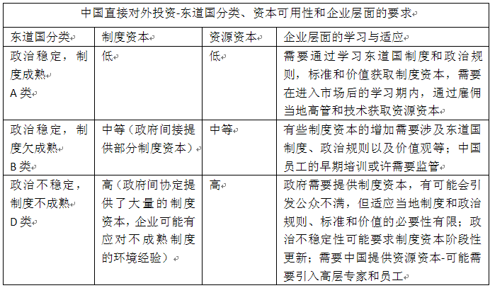 为了充分理解对外投资及其实施我们需要一种对原籍国和东道国情境敏感的分析。这种分析需要考虑资源、制度和政治的“三角”因素。