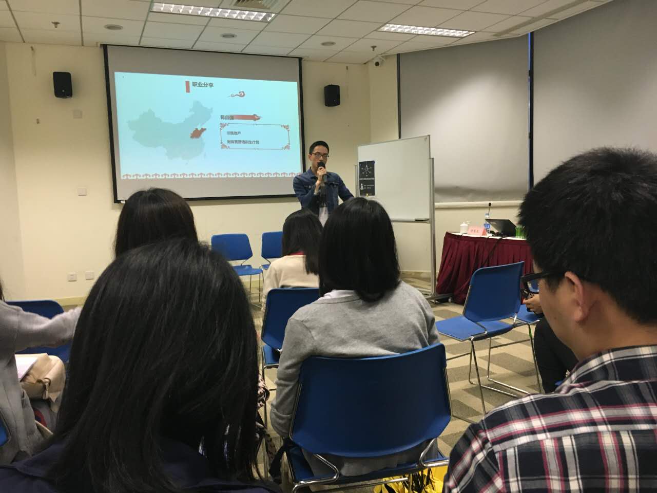 《定位 专注》——上海承载着无数年轻人的梦想和青春,上海也让无数年轻人为它蛰伏,经历了几百份简历的投递与无数次的面试经验,赵水清学长坚持着最初的信念,不抛弃不放弃。精心为学弟学妹准备的ppt演示中,更是包含着对于职业不同的看法。要学会去定位自己,聆听自己内心的真实想法,做对自己最好的选择。并在不同的实习过程中发掘闪光点,汲取养分。
