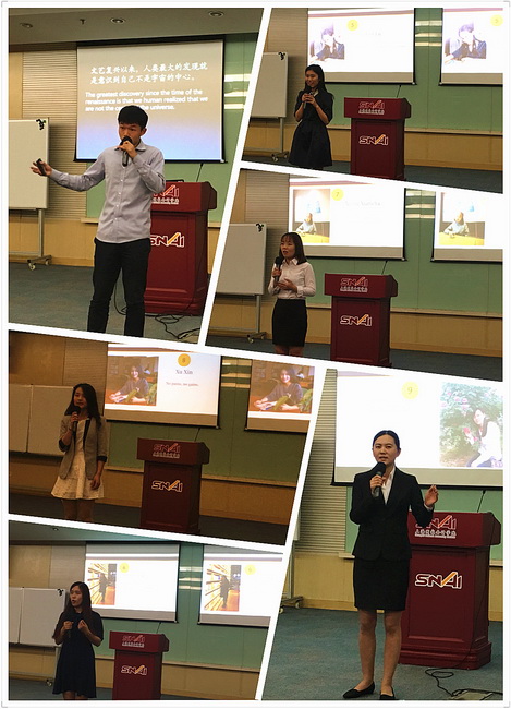 (撰稿:秦玥;摄影:霍佳伟)5月16日晚六点半,第四届SNAI杯英语演讲比赛在院举行。徐宪光、佟成生、赵敏三位老师担任此次比赛评委。